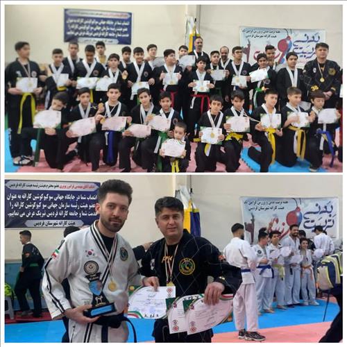 با تلاش فراوان به هنرجویان نونهال آقایان طاها واسارکی و بنامین بلوریان کمربند زرد ااعطا گردید