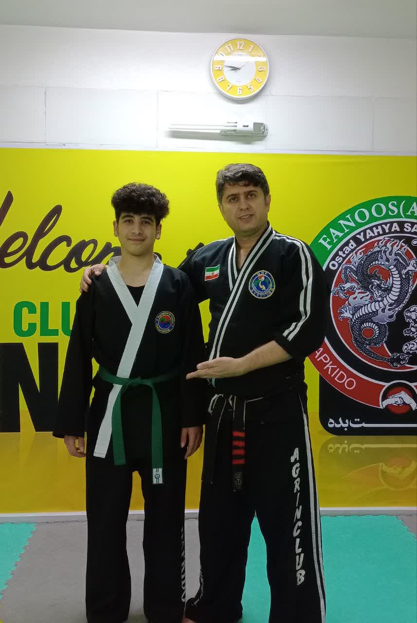 ارتقای درجه هنرجو علی اصغر غلامی به درجه سبز بعد از یک سال تلاش مستمر در مدرسه دفاع شخصی فانوس محمد شهر (آگرین ۲)